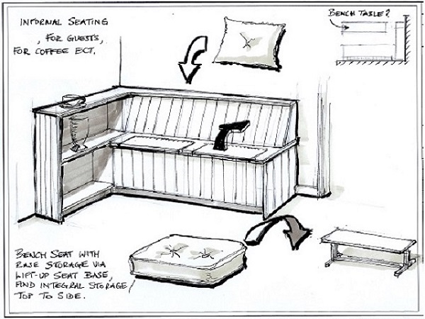 Copious hand-drawn sketches and computer visuals thoughout the process, keeps the client fully informed for fast and efficient decision making - so important when transforming the intangible into the tangible.